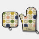 Retro Groovy Summer Flowers Stems Oven Mitt & Pot Holder Set