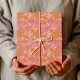 This wrapping paper design features a groovy floral pattern in vibrant, fun-loving colours!