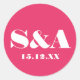 Retro art colourful abstract groovy personalised wedding sticker. Vibrant pink and white. This sticker is easily editable. If you need help with the customisation of this product or you need more matching products for this collection kindly message me via Zazzle.
