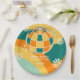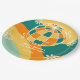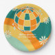 Retro Groovy Wave Disco Ball Daisy Orange Birthday Paper Plate