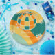 Retro birthday design featuring a disco ball with cute daisy flowers on a groovy wave background. Perfect party supplies for a retro disco-themed birthday.