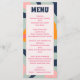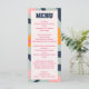1970s vintage retro groovy personalised wedding menu card in groovy bold typography and pastel colours including; pink, blue and orange. This menu card is easily editable. If you need help with the customisation of this product or you need more matching products for this collection kindly message me via Zazzle.