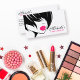 Business card with a beautiful black and white fashion girl face with pink lips on a white background. Perfect for your company promotion. Suitable for make-up artists, cosmetologists, lash extension, hairdressers, stylists, spa salon , hair and beauty salon or model agency. Customisable. Collection of matching branding products: