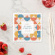 The background of each napkin features a vibrant and eye-catching colour palette, consisting of orange, blue, beige, ecru, and yellow tones.