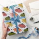Retro-inspired pattern of bright flowers in blue, green, yellow, red, and orange with vintage mid-century modern halftone and star details.