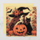 Retro Halloween Witch with Cat Flat Greeting Card