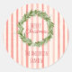 Retro Hand Drawn Green Red Christmas Wreath Classic Round Sticker
