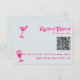 A unique and elegant calligraphy colourful retro wedding rsvp card. As you see it has a vintage modern white grey background with vivid pink hand written script and hand drawn painted champagne and martini glasses. And customisable QR code so your invites could RSVP easily online. You can edit easily it by clicking on the personalise button.