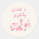 Retro Hand Drawn Pink Tableware Birthday Brunch Classic Round Sticker