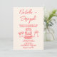 Retro Hand Drawn Red Cake Unique QR Code Wedding Invitation