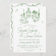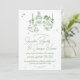 Retro Hand Drawn Scribble Green & White Wedding Invitation