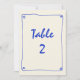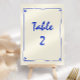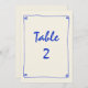 Retro Handwritten Blue Wedding Table Number