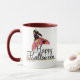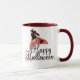Retro style Happy Halloween T-shirts, mugs, mousepads, magnets, tote bags, buttons, and more with an unusual stripes and dots colourful witch hat, broom, and text that reads "Happy Halloween"!