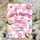 Pink and white retro-style chequerboard with cute smile faces and daisy flowers for a groovy girls' party.