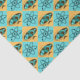 This Retro Harlequin Globe Trotter Tissue Paper design features a repeating pattern of an abstract oval globe with wood grain continents and atomic symbols. The oceans on the vintage globe are in shades of teal and turquoise. The globe is on a triangular wooden stand and the whole world is on a wheat coloured background. The atomic symbols are on a turquoise background. This design is kitschy, space age goodness at its finest!