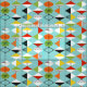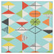 This Retro Harlequin Pattern Combed Cotton Fabric is mid century modern style at its finest. The vintage inspired design features an aqua background with rows of triangular shapes forming a harlequin pattern. The two-toned diamond shapes are yellow, white, red, orange, black, green, and white with black accents. But wait, there’s more! There are also orange ovals, green ovals with black starbursts, and outlines of black diamonds. Time marches on, but you’ll feel like you’ve found a kitschy blast from the past with this colourful geometric treasure.