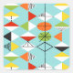 These Retro Harlequin Pattern Stickers are mid century modern style at its finest. The vintage inspired design features an aqua background with rows of triangular shapes forming a harlequin pattern. The two-toned diamond shapes are yellow, white, red, orange, black, green, and white with black accents. But wait, there’s more! There are also orange ovals, green ovals with black starbursts, and outlines of black diamonds. Time marches on, but you’ll feel like you’ve found a kitschy blast from the past with this colourful geometric treasure.
