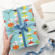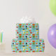 This Retro Harlequin Pattern Wrapping Paper is mid century modern style at its finest. The vintage inspired design features an aqua background with rows of triangular shapes forming a harlequin pattern. The two-toned diamond shapes are yellow, white, red, orange, black, green, and white with black accents. But wait, there’s more! There are also orange ovals, green ovals with black starbursts, and outlines of black diamonds. Time marches on, but you’ll feel like you’ve found a kitschy blast from the past with this colourful geometric treasure.