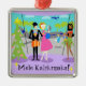 Mele Kalikimaka! This Retro Hawaiian Christmas Ornament features a minimalist cartoon drawing of an attractive couple taking the holiday trip of a lifetime! The mid century modern scene is set in a tropical airport. Mr. and Mrs. Tourist are posing in front of the floor to ceiling glass walls. After all, they want to document every moment of their vacation to paradise. Mr. Tourist is dressed in a black suit, light blue shirt, red tie, and black fedora. He is holding an orange suitcase. His arm is around his beautiful bride. She is wearing a hot pink dress. A bright blue handbag is slung over one arm. A Santa hat is gracing her blonde head. It wouldn't do to travel by air and not look your best! Both of them are wearing colourful flower leis around their necks. Beside them, we see a stunning, golden skinned hula girl with flowing black hair. Miss Hula is wearing a traditional grass skirt. Her hula top has a festive twist, however. Her bikini top is red with white trim. Eat your heart our, Mrs. Claus! Instead of a flower, she is wearing a sprig of holly in her hair. On one arm, she has an extra Hawaiian lei ready to offer the next person to step off the plane. Ah, can't you smell the orchids now? On the opposite side of the couple, there is a Christmas tree that has been given an island makeover. The happy cedar is decked out with pastel seashells and starfish. On the opposite side of the glass, we can see the luxury, jumbo jetliner that brought the couple to their vacation destination. On the tarmac, 1960's style flight attendant is making her way to the building. She is wearing a form fitting, blue uniform and a blue pillbox hat. Yowza! That gorgeous blonde can offer me coffee, tea, or milk anytime! The sky a shade of aqua that makes you want to reach for the suntan oil! We can see the green silhouettes of palm trees and the dark blue silhouette of a plane flying among the fluffy, light blue clouds. Oh, I hope those poor suckers on that plane aren't on their way back to the daily grind! Aloha!