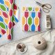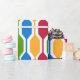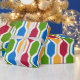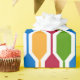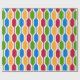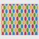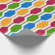 This wrapping paper is covered with a mid-century modern design of retro hexagons in red, gold, blue, green. Fun design.