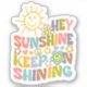 This cute " Hey Sunshine, Keep on Shining" sticker features a quote with retro flowers.
