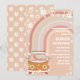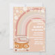 Celebrate in groovy style with this retro hippie-themed birthday invitation featuring pastel rainbows, peace signs, daisies, and a vintage flower-power van. Perfect for a first birthday or any fun, nostalgic party, this customizable card sets the tone for peace, love, and good vibes. With its soft peach background and playful retro accents, its an eye-catching design that will delight guests and make your celebration unforgettable.