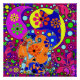 Bright retro colourful hippie flowers with a hidden kitty. For more colourful decor visit the rest of this shop!