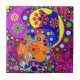 Retro Hippie Flower Power Paisley Cat Pop Art Tile