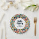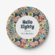 Retro Hippie Groovy Flower Hello Eighty Birthday Paper Plate