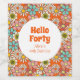 Retro Hippie Groovy Flower Hello Forty Birthday Wine Label