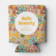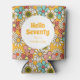 Retro Hippie Groovy Flower Hello Seventy Birthday Can Cooler