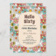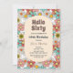 Retro Hippie Groovy Flower Hello Sixty Birthday Invitation