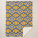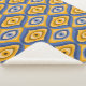 Psychedelic blanket with weird eye pattern indigo blue and honeycomb yellow colours. This fun eclectic quirky pattern resembles retro modern mid-century style due to its geometric shapes.