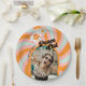 Retro 70s hippie vibes arch photo graduation party plate! Swirly sunburst lines in soft pink, pastel blue and orange with groovy flowers and the words "Peace Out" in retro lettering. Add your graduate's photo.