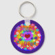 Retro Hippie Style Peace Love Flowers Rainbow Key Ring