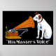 About the dog: The name was coined in 1899 as the title of a painting of the dog Nipper listening to a wind-up gramophone. In the photograph on which the painting was based, the dog was listening to a phonograph cylinder. The trademark image comes from a painting by English artist Francis Barraud, A.R.A. and titled His Master's Voice. It was acquired from the artist in 1899 by the newly-formed Gramophone Company. According to contemporary Gramophone Company publicity material, the dog, a fox terrier called Nipper, had originally belonged to Barraud's brother Mark. When Mark Barraud died, Francis inherited Nipper, along with a cylinder phonograph and a number of recordings of Mark's voice. Francis noted the peculiar interest that the dog took in the recorded voice of his late master emanating from the trumpet, and conceived the idea of committing the scene to canvas.(source: wikipedia)