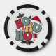 Retro Ho Ho Ho Christmas Holiday Holly Santa Hat Poker Chips features a fun Christmas design with text "Ho Ho Ho" in modern typography accented with holly, love hearts, stars, decorations, gifts and a Santa hat. Perfect for Christmas and the holidays. Created by Evco Holidays www.zazzle.com/store/evcoholidays