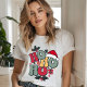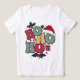 Retro Ho Ho Ho Christmas Holiday Holly Santa Hat Women's T-Shirts features a fun Christmas design with text "Ho Ho Ho" in modern typography accented with holly, love hearts, stars, decorations, gifts and a Santa hat. Perfect for Christmas and the holidays. Created by Evco Holidays www.zazzle.com/store/evcoholidays