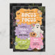Send a spellbinding invite for a bunch of Hocus Pocus! This groovy retro Halloween birthday invitation features a a spooky ghost, jack-o-lantern, florals, bats, and magical vibes—perfect for a kids or adult costume party! Whether you're throwing a kids’ spooktacular or an adult Halloween bash, this Spooktacular design sets the scene for a spellbinding celebration. Great for anyone who loves a bunch of Hocus Pocus!