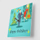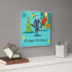 This Retro Holiday Cartoon Couple Wall Clock will put you in the holiday spirit. The design features a turquoise background with teal bricks and an olive green, cone fireplace. There is a teal, starburst wall clock and a two-tier pendant lamp in shades of yellow, blue and black. A green Christmas tree is adorned with a yellow star and teal ornaments. Front and centre, there is a distinguished, martini-swilling businessman in a blue suit and orange tie. To his side, his blonde bombshell of a trophy wife is wearing a red wiggle dress and a Santa hat while holding a tray of martinis. Beneath the picture, two vintage starbursts surround the words, "Happy Holidays." Fa-la-la-di-da!