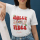 Retro groovy typography customisable script sweatshirt. The design features the text "Holly Jolly Vibes" in pink and red groovy typography with boho-themed floral, party and funky elements like Christmas socks, colourful santa and stars. The name can be easily customised. Makes for the best personalised gift for yourself, your friends, family members and even neighbours. We have 45+ more Christmas designs in retro, watercolor and funny typography-based themes in our collection that you will definitely love. Merry Christmas!