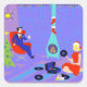 These Retro Home for the Holidays Stickers look like a scene out of a 1960's television Christmas special. The minimalist design features an attractive cartoon couple in the living room of a mid century modern house. The room prominently features a purple and blue stone wall and a matching purple and blue striped rug. Against the wall, there is a turquoise cone shaped fireplace with a roaring fire. Two, red and white Christmas stockings have been hung by the mod chimney with care. Strands of colourful Christmas lights are strung across the top of the wall. In the corner, the suave man of the house is lounging in a red egg chair. He is wearing a blue suit with a red tie. There is a sprig of holly pinned to his lapel. In one hand, he is holding a martini glass. No wonder he's so full of the Christmas spirit! Beside him, there is a small, green Christmas tree with teal ornaments and a yellow star. Hanging from the ceiling, there is a yellow Sputnik light fixture. A blonde with an hourglass figure is sitting on the rug. She is wearing a festive, red dress and Santa hat. Beside her, on the floor, there is a blue and black portable record player. Several Christmas albums are scattered near the beautiful deejay. Go ahead and sing along. You know you want to!