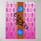 Old retro surfboard design with a pink background and Hawaiian Honu Sea Turtles and Tiki Masks pattern. The Hawaiian Sea Turtle is a symbol of peace, good luck, and the spirit within. It is based on the Hawaiian legend of Kauila, a sea turtle that could change into a girl and watch over the children of Hawaii.