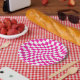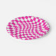 Retro Hot Pink Warped Chequerboard Paper Plate