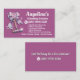 Cute cleaning card, cartoon maid design, retro cleaning style, purple card, magenta card, flower business card, house cleaning business card