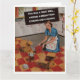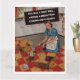 1950s housewife installing floor tiles sarcastically saying she needed a break from cooking and cleaning.