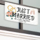 Add a touch of nostalgia and fun to your getaway car with our retro 'Just Married' design! Featuring retro-inspired icons, this design brings a playful and vintage vibe to your wedding day, making it a memorable and unique addition to your celebration. Whether you're cruising through the city streets or countryside roads, this charming design is sure to turn heads and put a smile on everyone's face as you embark on your new journey together.