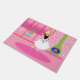 This Retro In the Pink Door Mat looks like a scene out of a 1960's romantic comedy. The minimalist design shows a sophisticated woman in her ultra kitschy and ultra pink, penthouse apartment. The room features a pink brick wall with white grout lines. In front of the wall, there is a green cone fireplace with a roaring fire. Through sliding glass doors we see a pink balcony with a white railing. A lush, tropical plant is in an aqua flowerpot. The view from the balcony is of a silhouette of a big city skyline. Of course, the silhouette is in shades of pink! A yellow, crescent moon is in the sky. Standing on a hot pink, shag rug in the apartment is the leading lady of this design. In stark contrast to the rosy world she has created, the beautiful blonde is wearing a form fitting, black, scoop-necked top with a long, flared, white skirt with black feather embellishments. With this design, you too can be looking at the world through rose coloured glasses!