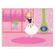 This Retro In the Pink Tablecloth looks like a scene out of a 1960's romantic comedy. The minimalist design shows a sophisticated woman in her ultra kitschy and ultra pink, penthouse apartment. The room features a pink brick wall with white grout lines. In front of the wall, there is a green cone fireplace with a roaring fire. Through sliding glass doors we see a pink balcony with a white railing. A lush, tropical plant is in an aqua flowerpot. The view from the balcony is of a silhouette of a big city skyline. Of course, the silhouette is in shades of pink! A yellow, crescent moon is in the sky. Standing on a hot pink, shag rug in the apartment is the leading lady of this design. In stark contrast to the rosy world she has created, the beautiful blonde is wearing a form fitting, black, scoop-necked top with a long, flared, white skirt with black feather embellishments. With this design, you too can be looking at the world through rose coloured glasses!
