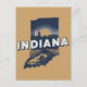 Stylish postcard features retro style scenic state silhouette of Indiana on light brown background.